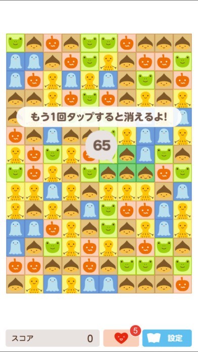 ちょこけしは、同じキャラが並んでいるコマをタップして消していき、先のことを考えながら消していくのがコツのパズルゲーム