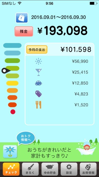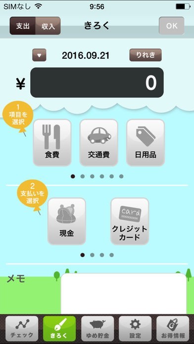 かわいいキャラクターのメッセージを見ながら家計簿がつけられる