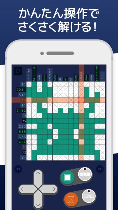 お絵かきロジックはスマホだとやりづらいことが多いのですが、これはタップでなく十字キーを採用していて正確な操作がしやすいです。問題も楽しい良問を揃えていてgood