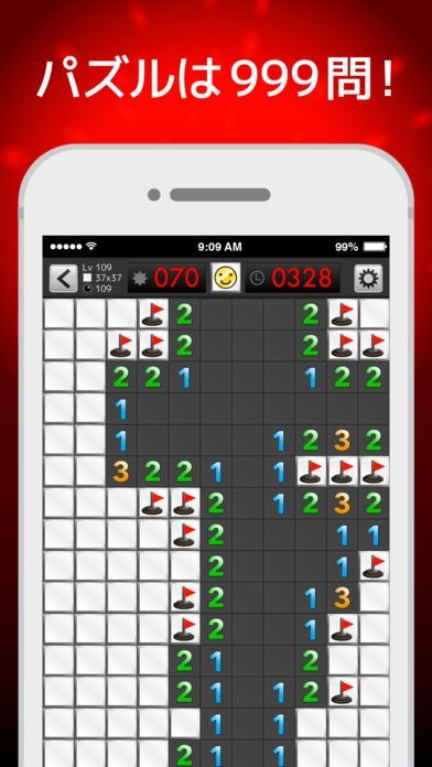 このアプリではマインスイーパーを全999ステージ遊ぶことができます。レベル1から徐々に難易度が上がっていき、レベル999をクリアしたときには他のゲームでは体験できない達成感を味わうことができます。