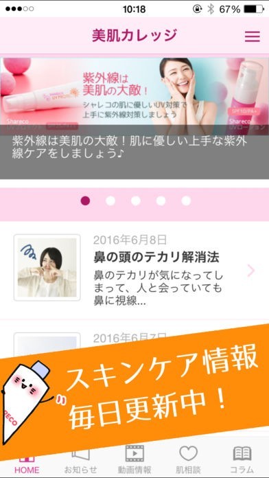 スキンケアや肌トラブル解消法、最新の美容情報などを毎日更新しています。楽しく学びながら、美肌になれるスキンケアをマスターすることができますよ。