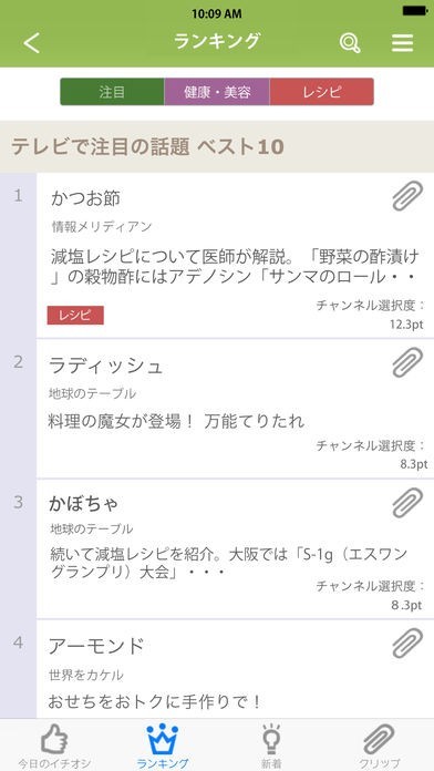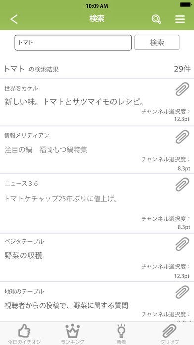 最近流行りはじめた食材など、よく話題に挙がっているキーワードについての情報を詳しく知りたい時には、検索機能を使ってそれに関連する情報をまとめてチェックできます。