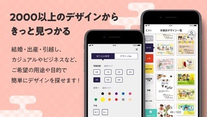 年賀状はもちろんのこと、結婚・引っ越し報告など様々な用途に使えるデザインが豊富に揃っています。デザインの数は2000種類以上にもなるので、欲しいデザインが見つかります。