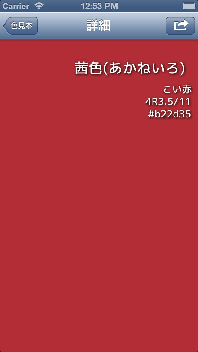色見本モードではRGB値(16進数)とマンセル値の確認も行えます。お気に入りの色を再現したい時には、RGB値などの数値が役立ってくれるでしょう。系統色名はふりがな付きで読みやすく表示してくれます。