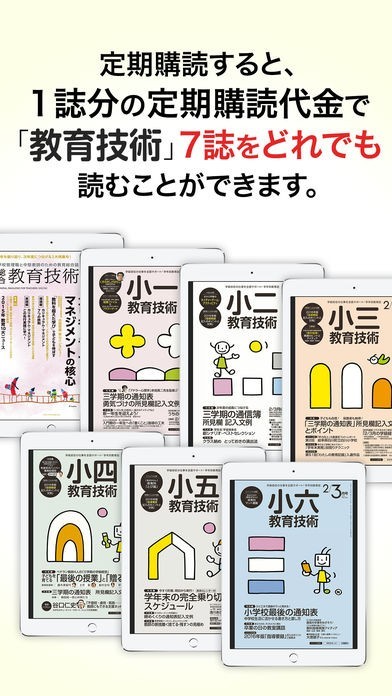 教育技術は、デジタル版で小学1年から6年までと総合の全7誌を定期購読できます。複数の教育誌を読みたい時に、1冊分の価格で好きなだけ読めて勉強になります。子供に勉強を教えるときに参考にすると、指導の仕方がわかります。