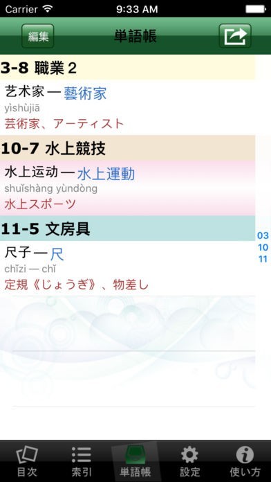 ◆それぞれの単語は、簡体字(普通話)・繁体字(台湾華語)・ピンイン・英語・日本語で示され、中国語の音声を聞くことができます。また、語彙・発音・文化背景などに関する補足解説も充実しています。