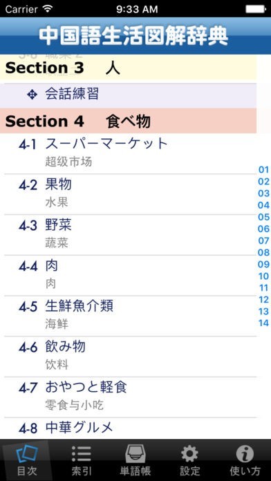 ◆衣食住の身近な言葉からショッピング・交通・スポーツ・教育・医療などの言葉まで、14セクション106ユニットで構成されています。