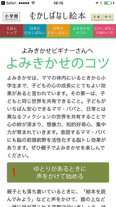 この「むかしばなし絵本」を、いつも持っているスマホやタブレット端末にダウンロードして、ちょっとした空き時間にアプリを開いて、お子さまに読みきかせをしてあげてください。
