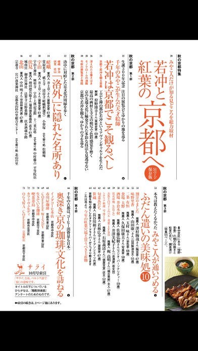 雑誌のダウンロードに対応しているので、通信環境が整っていない場所でも快適に記事が読めるようになっています。目次を通して各ページの概要を閲覧していけるのも魅力です。