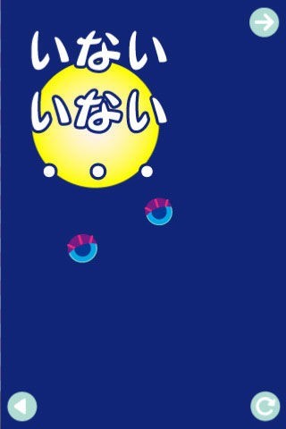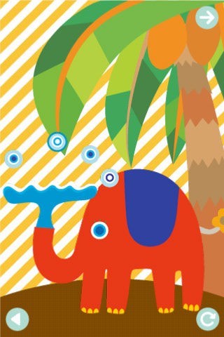 8種類の可愛らしい動物キャラクターがタップすると消えたり現れたり・・・声とアクションを交えながら、いないいないばぁ遊びをします。さらに、ジャングルで→ばぁ、昼と夜で→ばぁ、みんなで→ばぁ(写真取り込みモード)の計3モードがあり、様々なバリエーションで楽しめます。