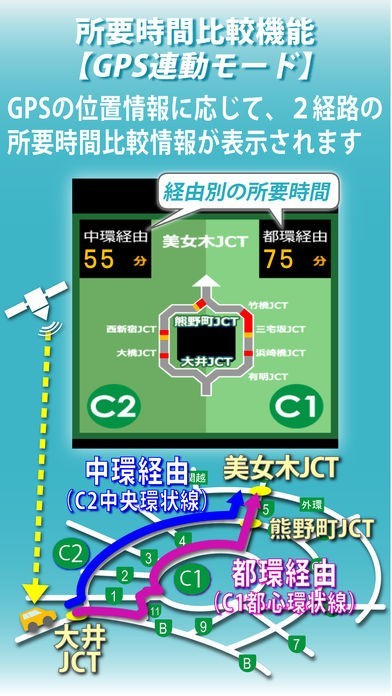 mew-tiは首都高速道路専用の交通情報を配信する交通アプリです。GPSによって現在位置を指定し、主要ジャンクションから比較した経路による所要時間の概算ができ、パーキングエリアから目的地までの所要時間も閲覧することができます。また首都高速の現在から2時間前までの渋滞状況を5分毎にさかのぼって閲覧することができる機能も備えています。