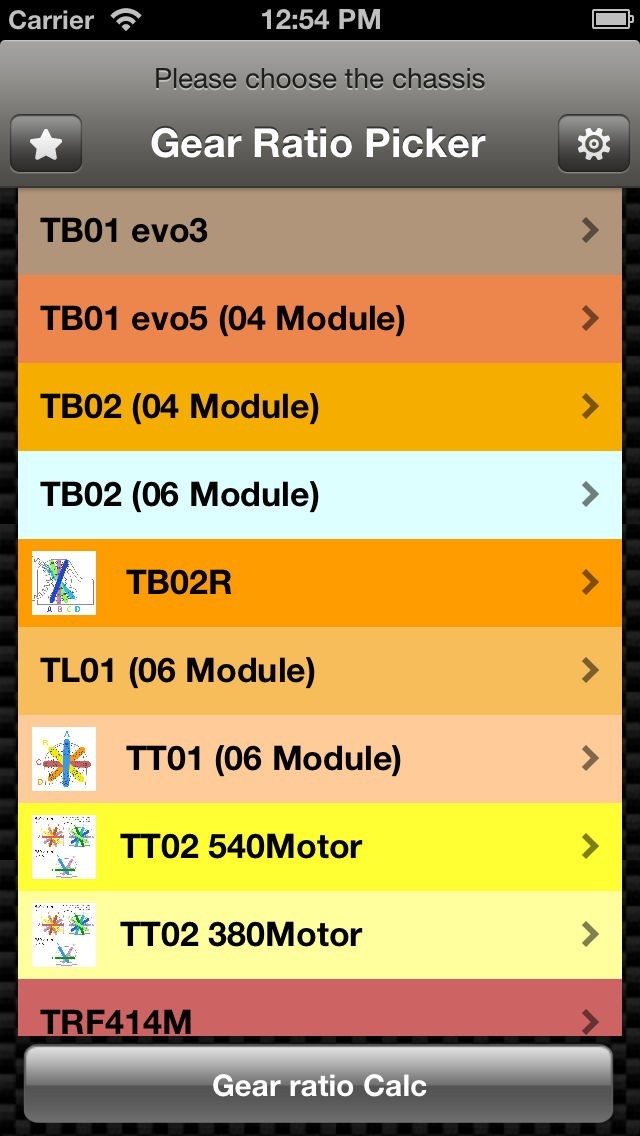ギヤ比情報では Ver 1.0.0 では以下のシャーシをサポートしています。
