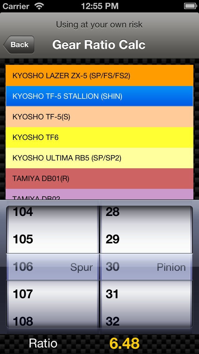 App Storeより引用RC Gear Ratio Picker は、RCカーのスパー・ピニオンギアから、ギヤ比を参照する事の出来るRCファンには便利なユーティリティアプリです。