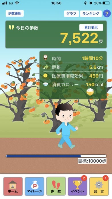 期間内のミッション達成を目指すチャレンジイベントや、実際に歩いた距離にあわせてキャラクターがアプリ内の地図上を旅するバーチャルウォーキング、友達や同僚たちとグループを作って歩数を競い合うグループランキング等、楽しく歩くための機能が満載!
