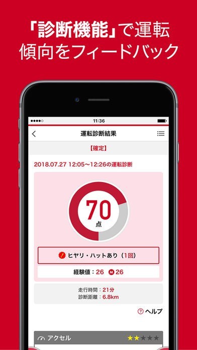 診断機能が実装されているので、運転力や傾向を調べたい時に使いやすいです。
