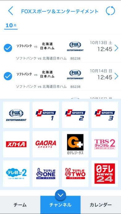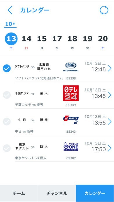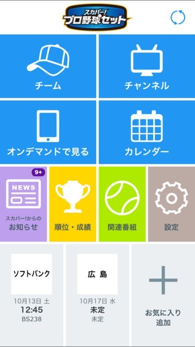 お気に入りチームを登録しておくと直近の放送予定試合を素早くチェック可能!