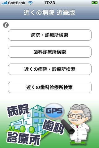 本アプリケーションは、近畿地区のGPSで取得した現在位置近くの病院と歯科を含む診療所情報を検索して表示します。関東版,近畿版で10万件超の情報を収録しています。