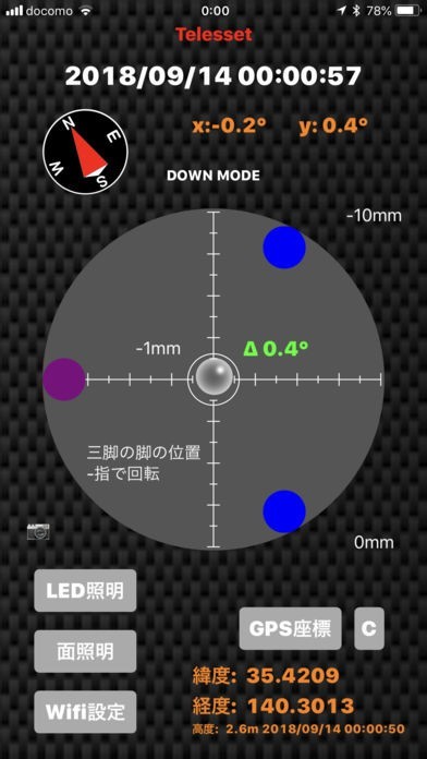 ・GPS座標の取得後に、[C]のタップでCelestron天体望遠鏡をすばやく正確に初期設定できるユーティリティを表示することができます。