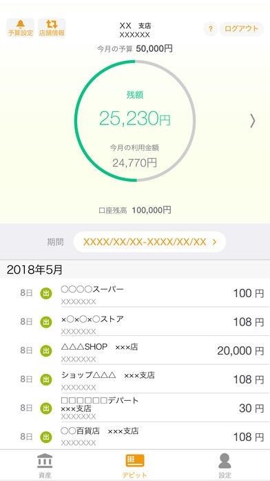デビットカードを登録すれば、いつどこでいくら使ったのか、支払履歴を確認でき、家計簿代わりにもなります。毎月の予算を決めて、使いすぎを予防するアラート管理もできます。
