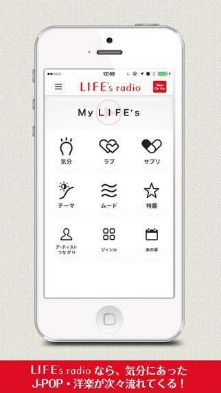 「LIFE’s radio」は、J-POPや洋楽などの配信を行っている音楽配信アプリです。 ジャズやアイドル曲、歌謡曲など、幅広いジャンルの音楽を配信しており、気分に合った音楽が自動的に流れてくるのが楽しいポイント。 ライク機能を利用して、好みの曲にはどんどん「ライク」を押していきましょう。 ライクを集めることで、自分だけのラジオ放送局が成長し、自分専用番組「My LIFE's」が届くようになります。