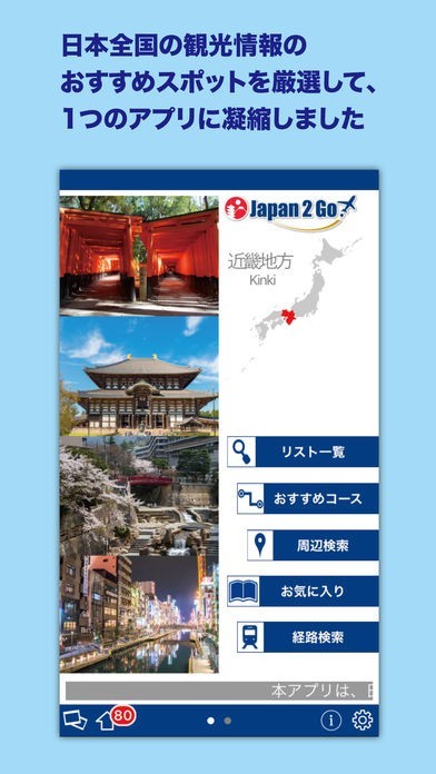 App Storeより引用「Japan2Go!近畿地方」を持って旅をしよう!