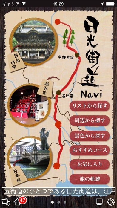 「日光街道Navi」は日光街道沿道の情報やおすすめコースが収録されたアプリで、日光街道を歩く方におすすめしたいアプリです。