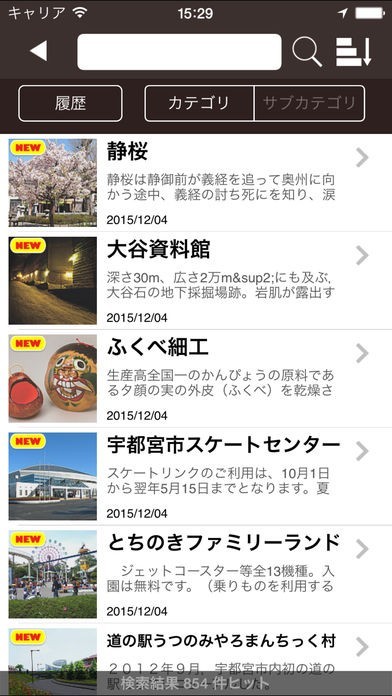 ・自分の位置を中心とした付近の観光スポットを地図/リストで表示