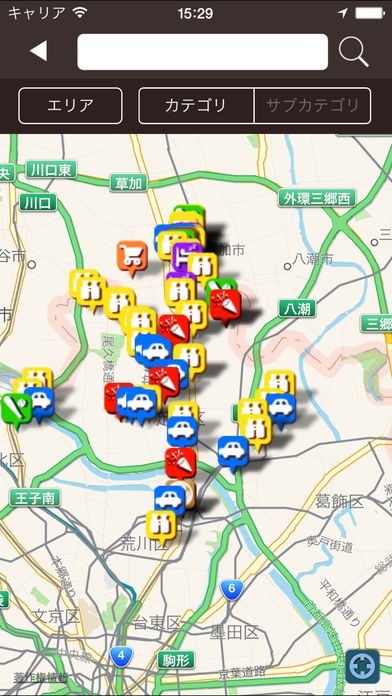 ・地図内を移動することで表示する観光スポットも変わります