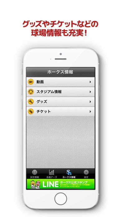 試合の経過や結果をはじめチームやスタジアムの情報が満載の福岡ソフトバンクホークス公式アプリ
