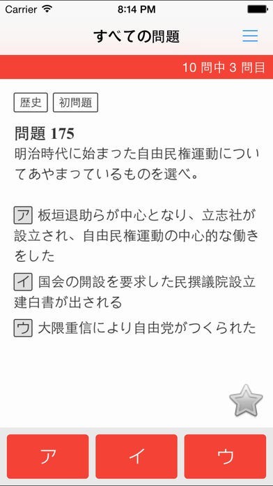 自分の苦手な問題や範囲は「間違えた問題」機能を使って重点的に復習することが出来ます。「解説機能」も付いているので、理解できない問題も、納得して次に進むことが出来ます。