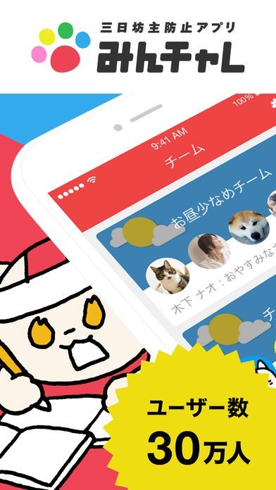 アプリ「三日坊主防止アプリ-みんチャレ」は、何か継続して取り組みたい目標ができたとき、その行動が三日坊主にならないよう、アプリの利用者同士でチームを組み、互いに励まし合いながら活動することができる「三日坊主防止」に特化したSNSアプリです。ダイエットや勉強など、継続しないと意味がないけれども続けるのが難しい目標を、同じように努力する仲間と共有し、チャットや証拠写真を送り合うことによって、取り組みを楽しみながら続けていくことができます。