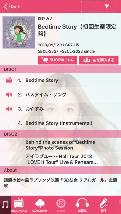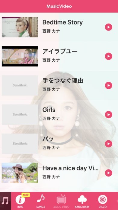 ソニー・ミュージックアーティスツ所属のシンガーソングライター、西野カナの公式アーティストアプリ