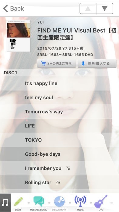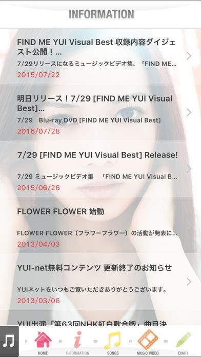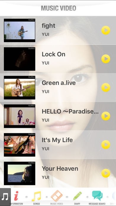 YUI 公式アーティストアプリのスクリーンショット