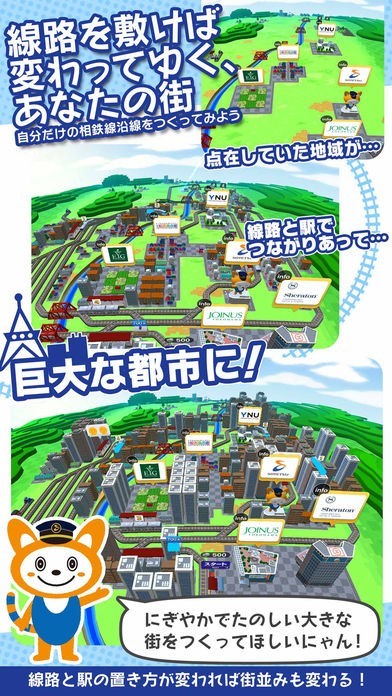 最新鋭の車両である相鉄20000系や相鉄本社ビル、沿線にあるランドマークなどの実在の施設が登場するので、よりリアルに都市開発シュミレーションを楽しむことができます。