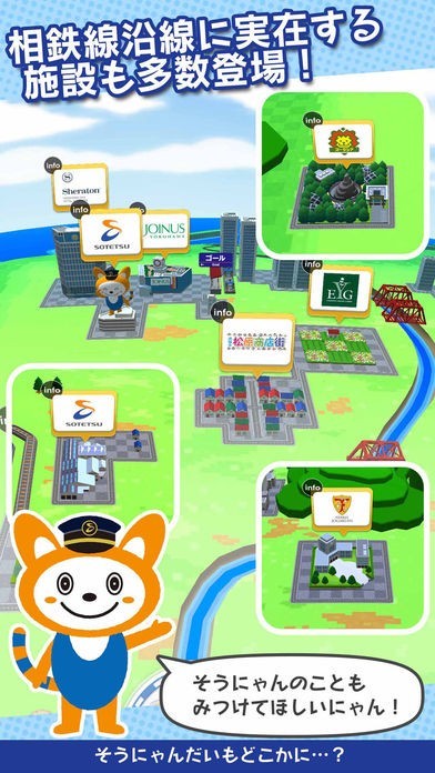 舞台になった相鉄線のランドマークが多数登場しています。さらに相鉄線限定の列車やマスコットのそうにゃんまで登場し、まるで相鉄線で旅をしているように楽しむことができます。