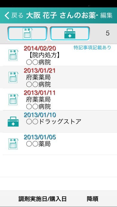 履歴によって、何日にどんなお薬を処方されたのかが記載してある