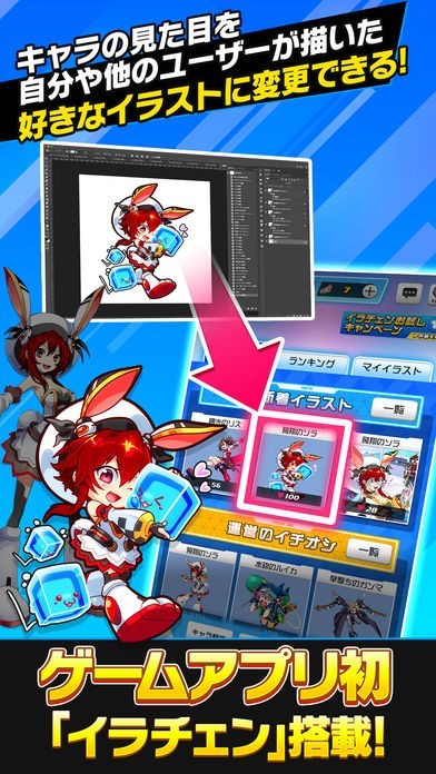 イラチェン機能によって、用意されているキャラクターのイラストをオリジナルのものにチェンジできます。自分で描いたイラストや他のユーザーが描いたイラストを使えます。