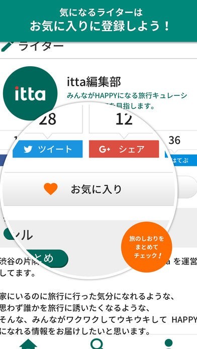 App Storeより引用実際に行ったからこそ分かる情報が満載の旅行メディア「itta」。