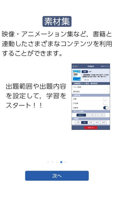 iPhoneやiPadで数研出版の教材の学習が可能、教材と合わせることでより高い学習効果を得られます。 主な学習コンテンツは、問題と解答と解説がセットになった問題カード、英単語などの選択形式で答える一問一答テスト、問題集の解説など書籍の詳しい内容理解に役立つ素材集があります。 人気のチャート式や英単語VALUEシリーズ、古文単語一問一答テストに対応しています。