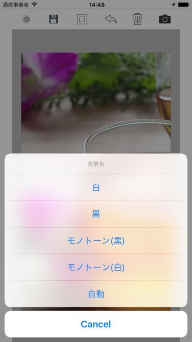 4:写真アプリを起動させて、先ほど保存した画像を背景画像に設定します。