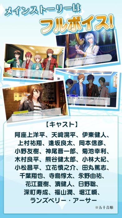 阿座上洋平/天﨑滉平/伊東健人/上村祐翔/小野友樹/逢坂良太/岡本信彦/神尾晋一郎/菊池幸利/木村良平/熊谷健太郎/小林大紀/小松昌平/立花慎之介/田丸篤志/千葉翔也/寺島惇太/永野由祐/花江夏樹/濱健人/日野聡/深町寿成/福山潤/堀江瞬/ランズベリー・アーサー(五十音順)