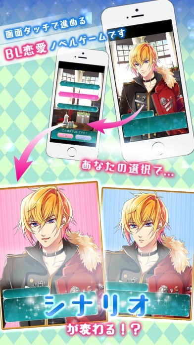 同性同士の恋で、ユーザーが受けか攻めかどちらの要素を持っているかにより話が変わります。そのため気に入ったキャラと好きな形で恋愛でき好きな関係性を築く過程を味わえます。