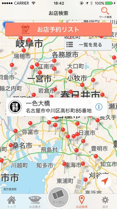 現在位置から最寄りの店舗を検索できる