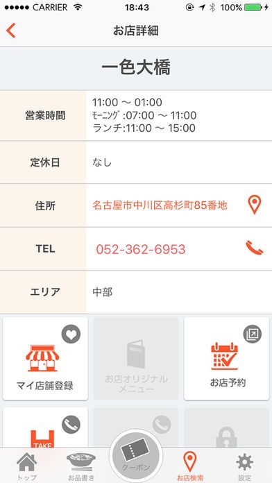 よく行くお店をマイ店舗として登録すれば、店舗ごとの詳細画面にワンタッチでアクセスできます。新しい情報のチェックや、電話や予約も簡単にできるので、一々情報を探す手間が省くことが可能です。