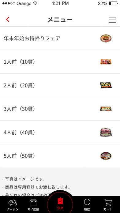 「寿司めいじん」お持ち帰り事前予約アプリのスクリーンショット