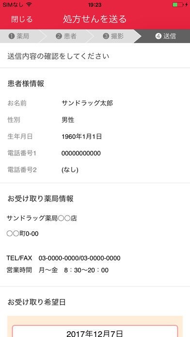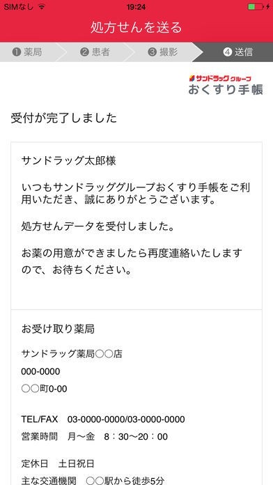 処方箋画像送信機能がついているので、データをサンドラッググループの店舗へ送信することによって事前に調剤準備ができます。待ち時間を短縮できるのでスムーズにお薬の受け渡しが可能です。