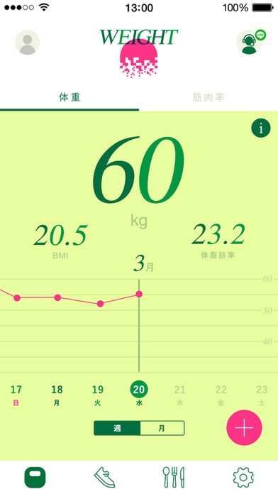 体重の増減の確認や毎日の歩数をポイント化するシステムで健康維持に役立ちます。