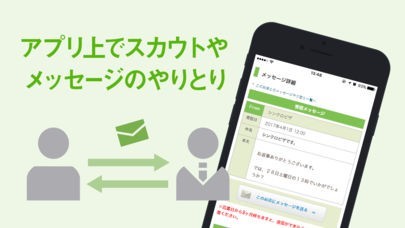 応募したお店からの連絡や、スカウトメールをアプリ上で受け取って、メッセージをやり取りすることが可能です。
