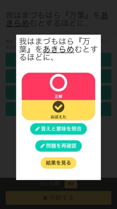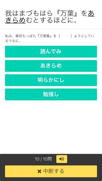 古文というものは好き嫌いが分かれ、自ら進んで勉強したくない人も多いと思います。しかしこのアプリなら、片手間に少しやるだけです。暇な時にちょっと触るだけで、いつのまにか古文の使い方が分かってきます。間違えた問題は記録され後で見返すことも可能なので、自分の苦手も減っていきます。