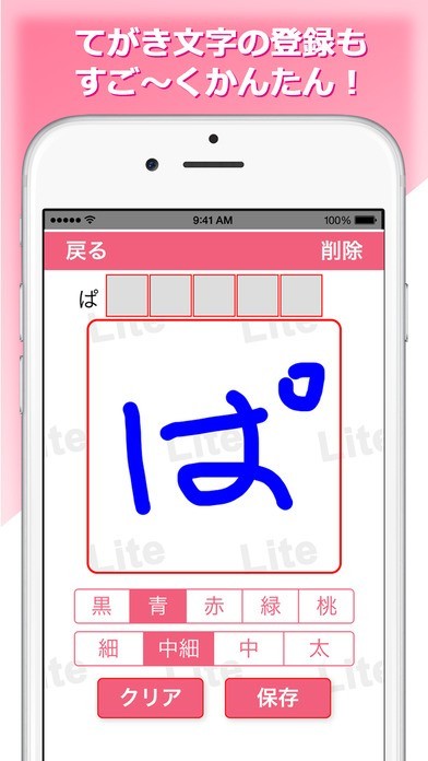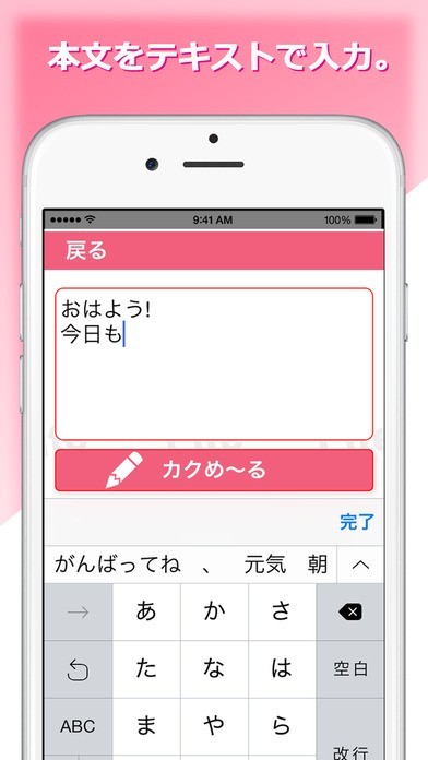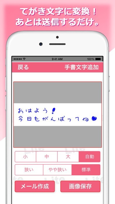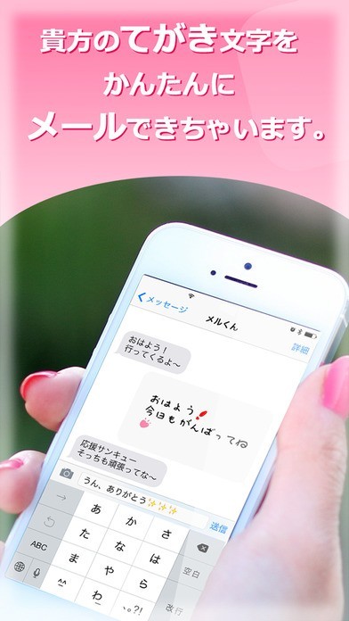 App Storeより引用「カクめ〜るLITE」を使って、かんたんに本格的な自筆文字で相手にメールが送れます。